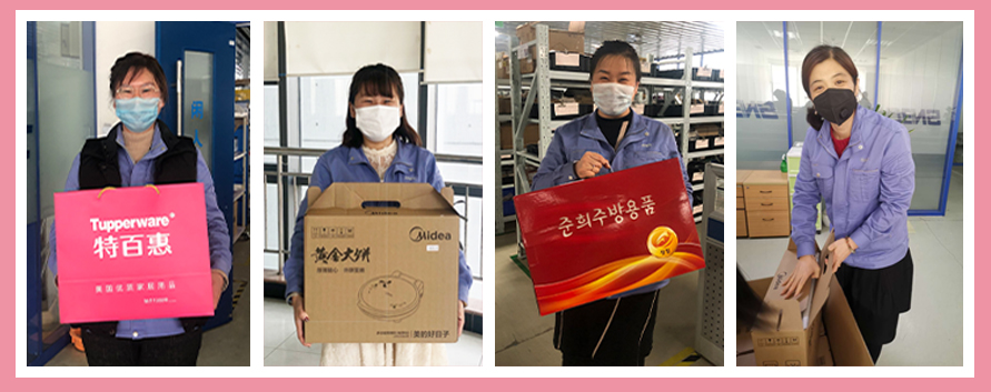 公司精心準備的禮品有特百惠的冷凍保鮮盒,美的電餅鐺,還有不粘炒鍋供選擇。疫情當前,病毒肆虐,公司提前四天采購到貨并進行消毒,經過四天的隔離“,確保禮品安全無毒,讓公司女職工充分感受到榮鑫大家庭的關愛,度過一個放心又溫馨的美好節日。透過口罩,我們依然看到一個個綻放的笑容。相信這次三八福利肯定能為大家的廚藝錦上添花。