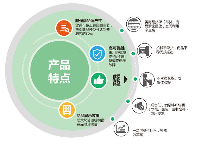 智能系列自助售貨機,具有超強的產品適應性、精美的商品展示效果、貨道可免工具調節等特點,同時結合公司前沿技術,成為銷售過程的絕佳幫手。 適用商品類型:食品、飲品、醫藥、保健、化妝品、3C等產品。