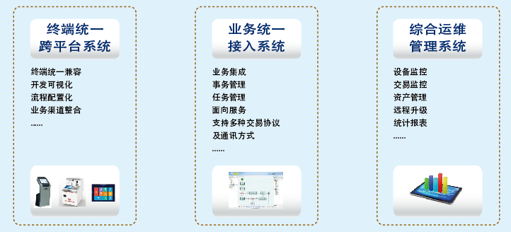 榮鑫科技向銀行客戶提供完整的智慧銀行統(tǒng)一管控平臺系統(tǒng)解決方案,包括:終端統(tǒng)一跨平臺系統(tǒng)、綜合運維管理系統(tǒng)、業(yè)務(wù)統(tǒng)一接入系統(tǒng),幫助銀行客戶打通線上線下渠道,兼容多廠商硬件設(shè)備應(yīng)用部署,實現(xiàn)多渠道互通,結(jié)合CRM系統(tǒng)為網(wǎng)點精準(zhǔn)營銷提供平臺支持。